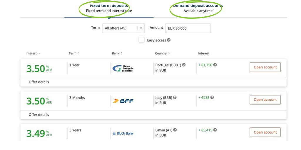 Simply: You go onto the Raisin website or app. Then create an account with Raisin. Look at the rates and regulations and then choose one of the partnered banks.